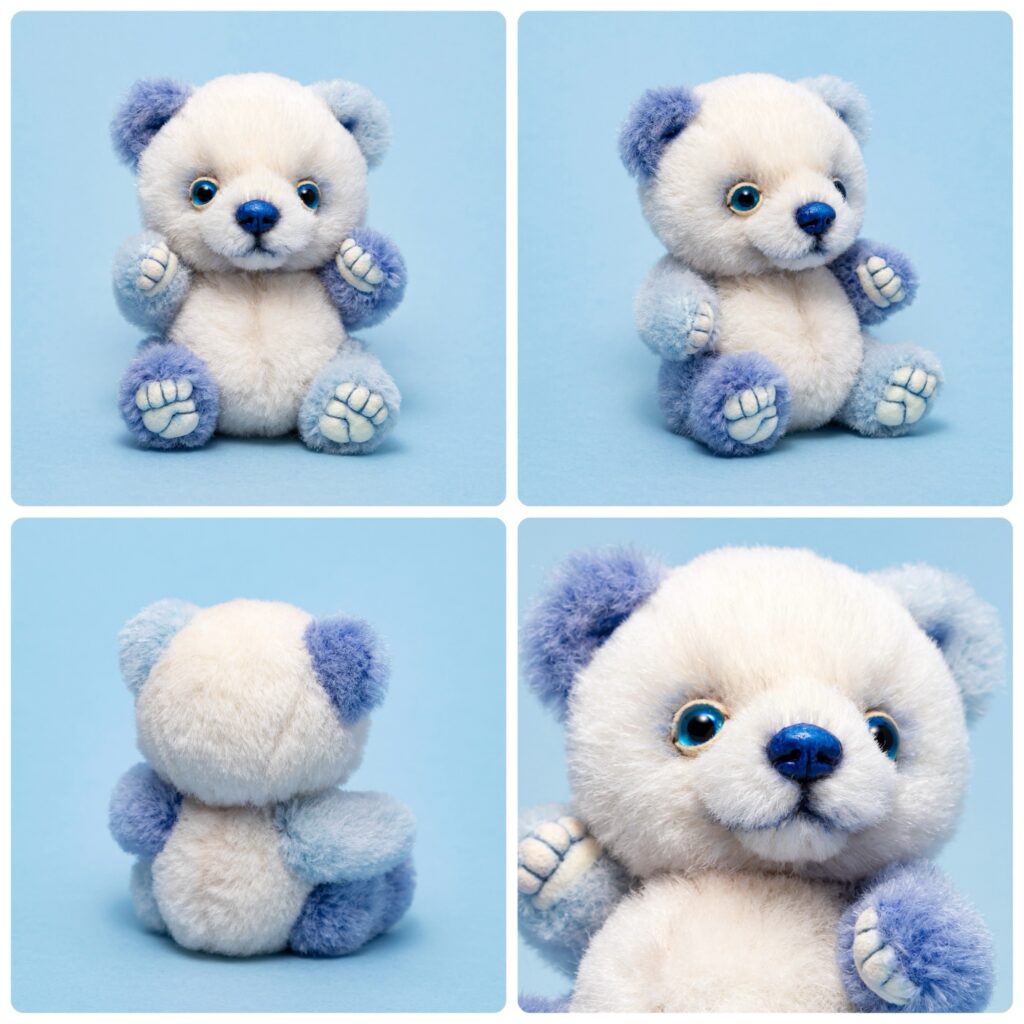 グラスアイはライトブルーの大きめで、肉球はホワイトです。
