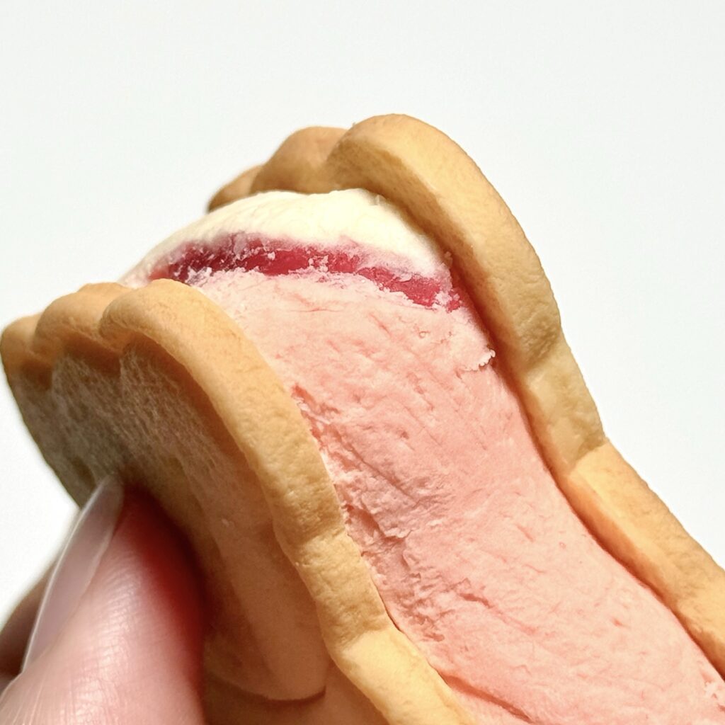 まだニスを塗っていないので全体的にマットな仕上がりなのですが、アイスの断面はこんな感じです。