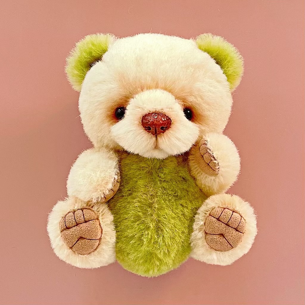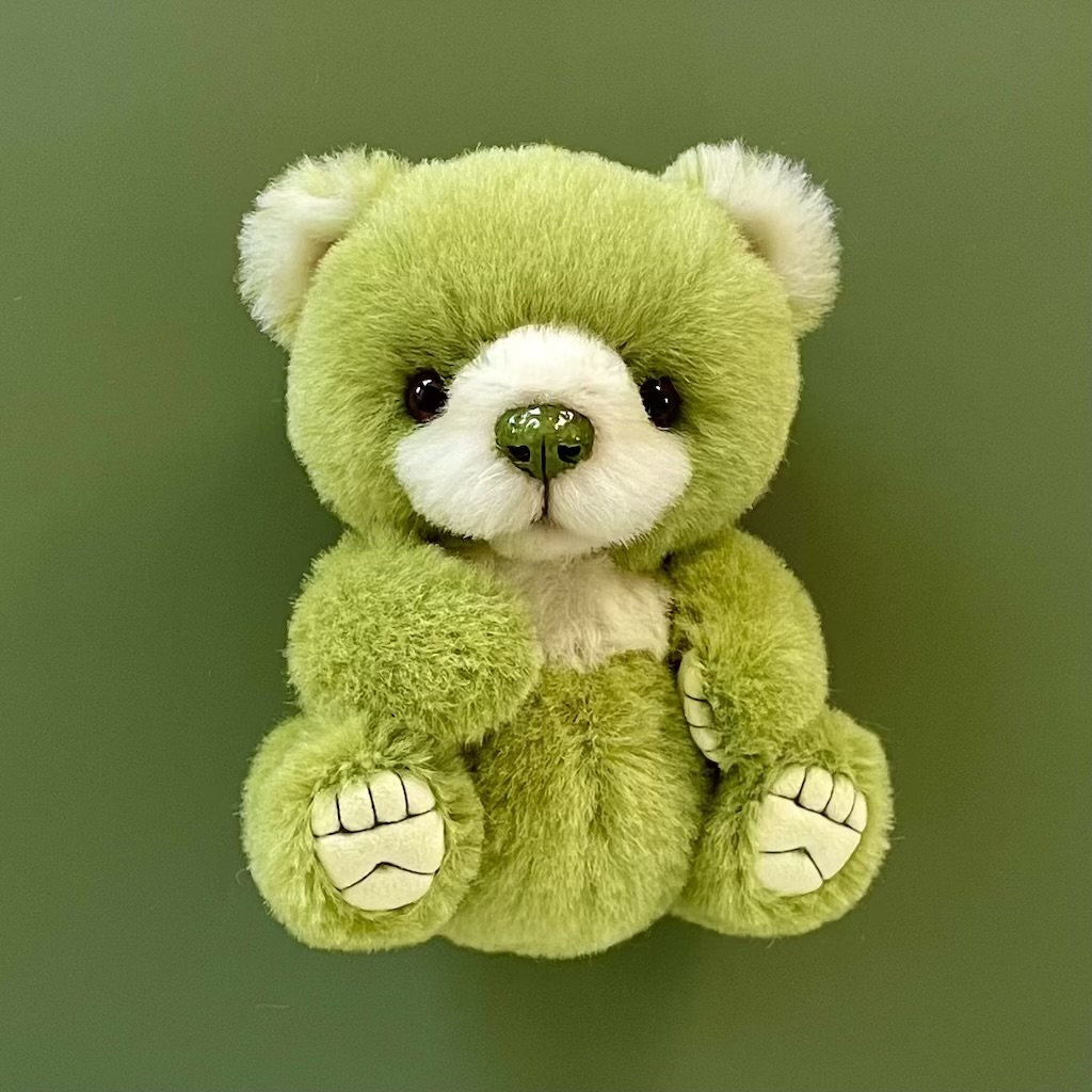 抹茶色の綺麗なボディ、くるくるお目目の可愛いお顔、しっかりとした重さ…どこをとっても可愛くて素敵なくまちゃんです。ちょうど良い大きさでどこにでも飾れるのもとても気に入りました。