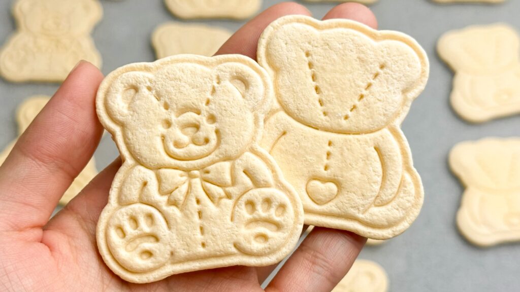 失敗した時のためにクマ2セットと、クッキーの裏側、そしてスタンプ無しのクッキーを型取りしました。