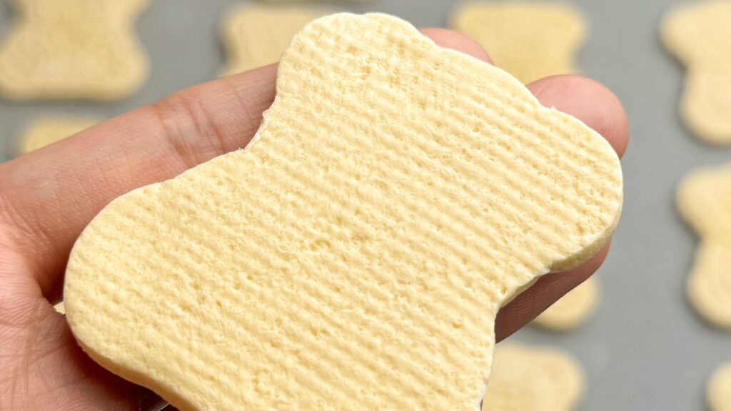 サクサクで味は美味しくできましたが、肝心の見た目は絵がぼやけ、厚さ4mmは無いとあんまり可愛くない(個人的な感想)ということで作り直すことにしました。